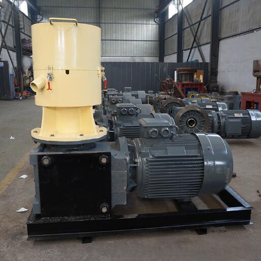 該設備以機械固有的運動為基礎,電機(或柴油機)作動力,帶動齒輪傳遞至主軸,在磨擦力的作用下使壓輥自轉,讓壓輥與壓模之間產生相應的磨擦溫度,使粉狀物料通過塑化,蛋白脂受溫變性,在壓輪的擠壓下從模孔中擠出,通過對切刀的調整可以得到需要的顆粒長度,再經甩料盤將制成的顆粒經出料口送出機外。