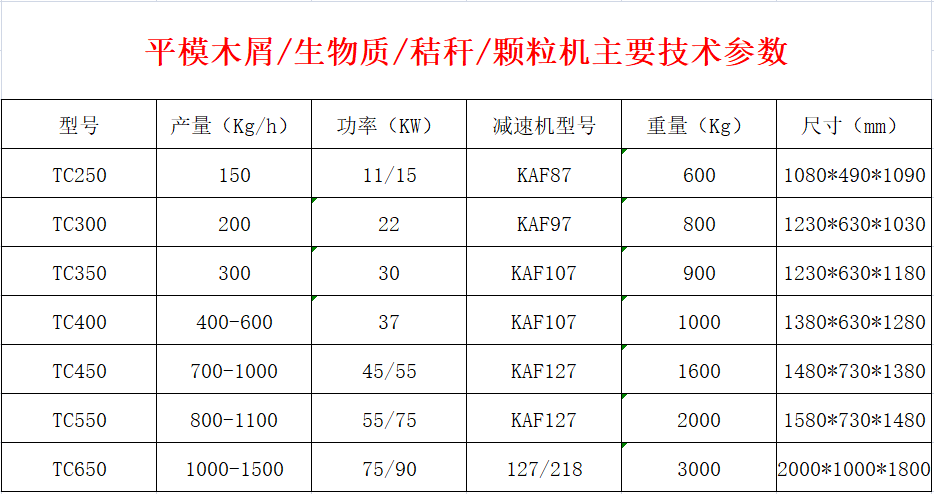 我廠的平模木屑顆粒機加工出的顆粒在6-10mm。成型后的顆粒特點:比重大,體積小,耐燃燒,便于儲存和運輸。成型后的體積是原料體積的1/30~40,比重是原料的10~15倍(密度為:0.8-1.4)熱值可達3400~6000大卡,是高揮發酚的固體燃料。